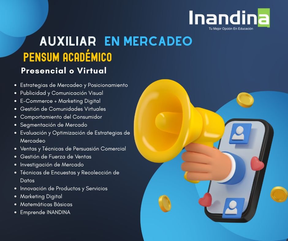 El programa de Técnico Auxiliar en Mercadeo te brinda las herramientas para comprender el mercado, apoyar en estrategias comerciales y fortalecer la relación con los clientes. Aprenderás sobre técnicas de ventas, servicio al cliente, investigación de mercados, gestión de puntos de venta y promoción de productos y servicios. La formación es 100% en línea y en modalidad de autoaprendizaje, lo que te permite estudiar a tu ritmo y prepararte para aportar valor en áreas comerciales y de marketing de cualquier empresa.